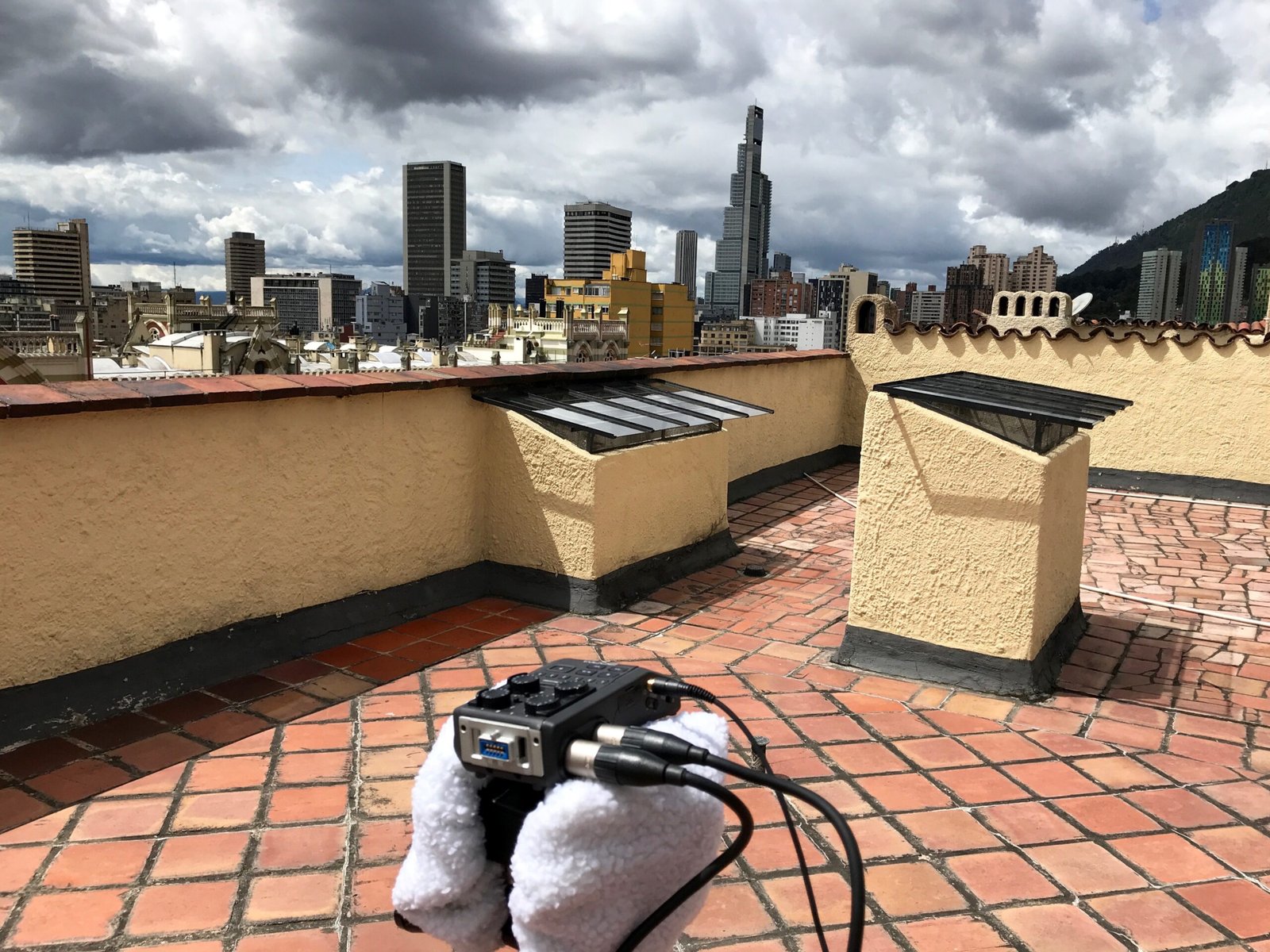 Durante el laboratorio realizo una matriz compuesta por grabaciones de la ciudad. Del afuera, paisajes sonoros de seis barrios y tres recorridos en el sistema de transporte público Transmilenio. Del adentro, la pregunta: Qué significa casa a los habitantes de una vivienda en cada barrio y el testimonio de mi madre, contenedora de una memoria sonora de la ciudad, cápsula de tiempo de los sonidos de ciertos oficios.